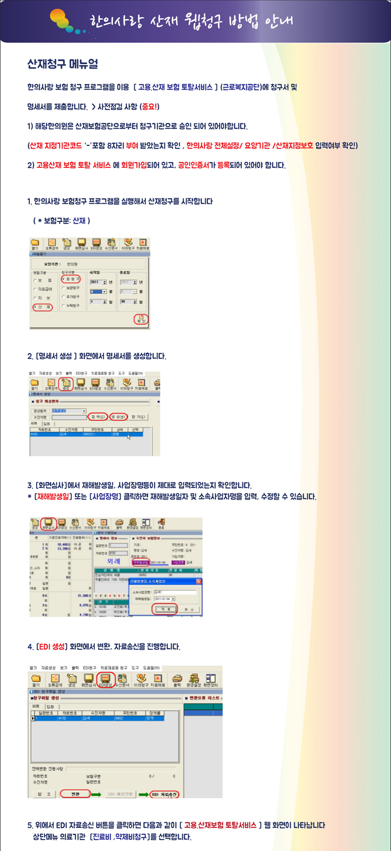 산재 웹청구 방법 안내 [이미지]