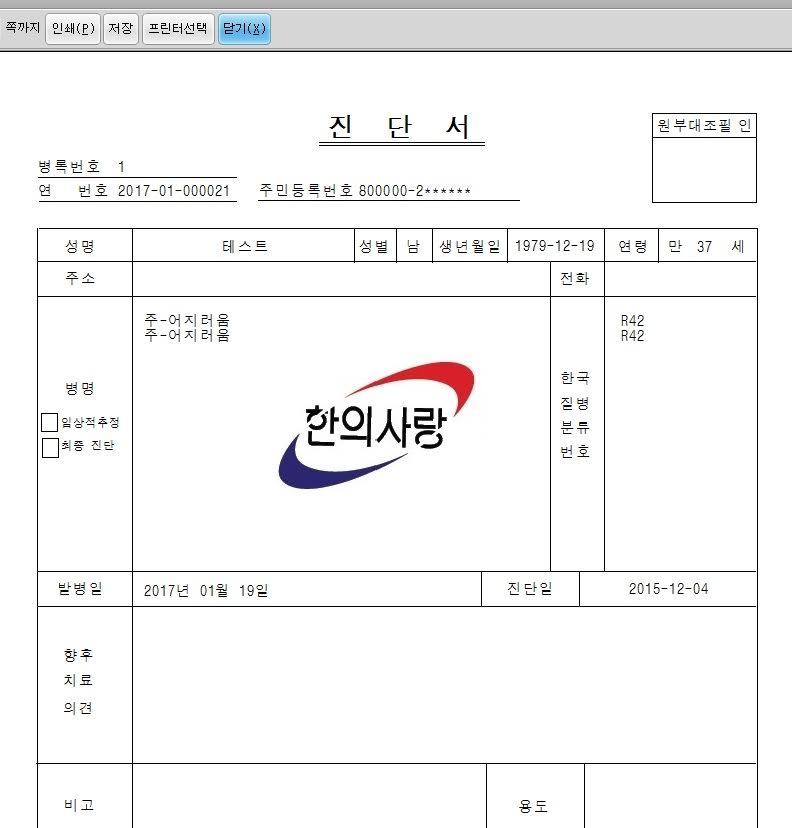진단서 로고 삽입은