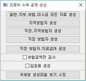 확인수납할때 의료비 제출금액을 정확히 입력한 곳은  [수납 의료비 제출금액 생성] 체크해서 생성하기 바랍니다.