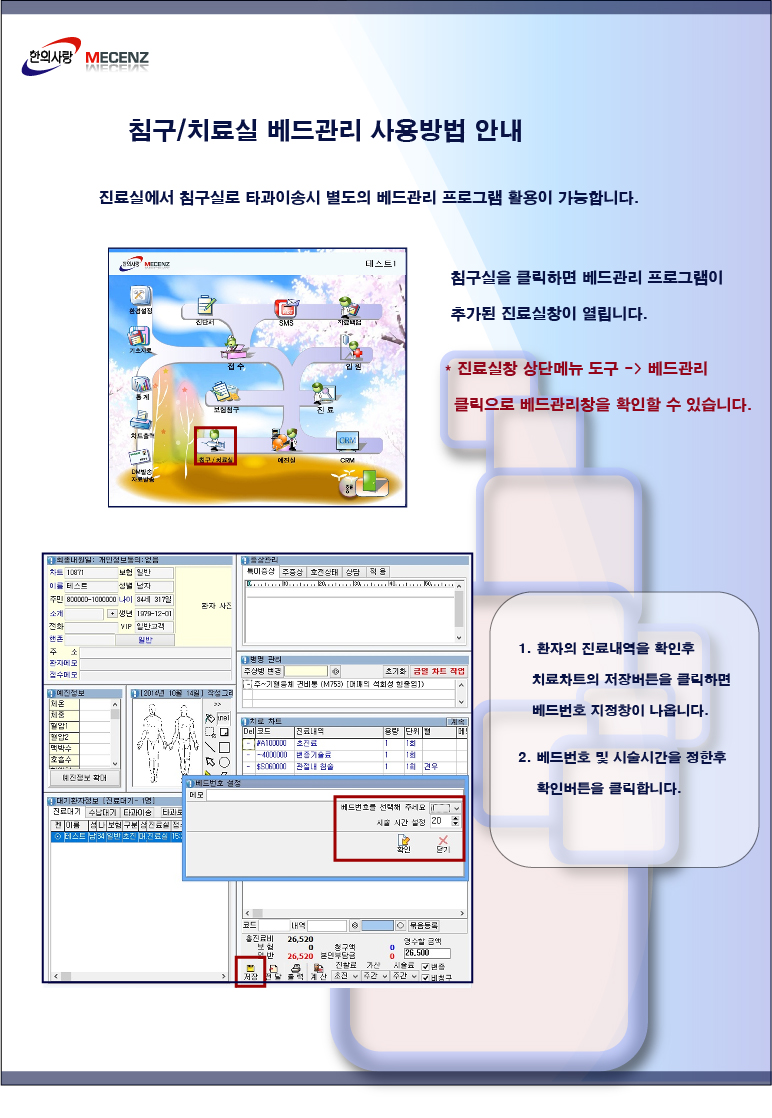 뉴한의사랑 침구실 베드관리 사용방법 [ 이미지 ]