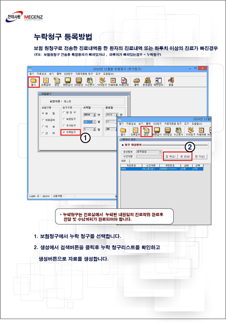 뉴한의사랑 누락청구 신청방법 [ 이미지 ]