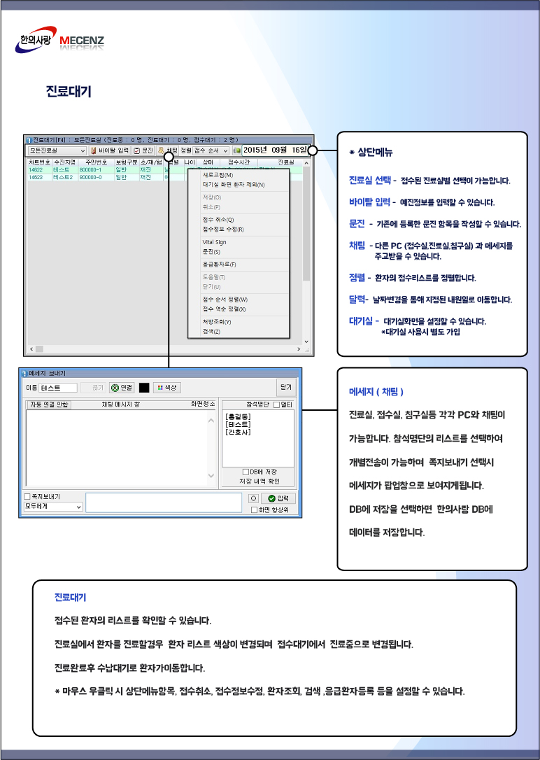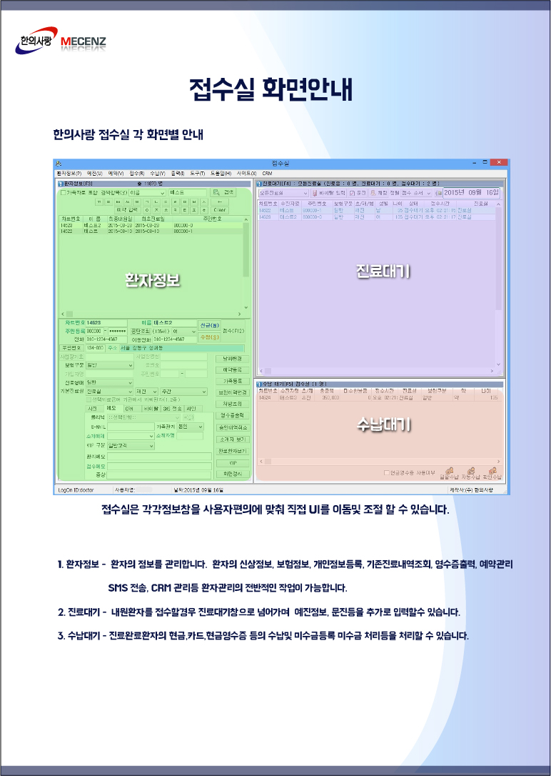뉴한의사랑 접수실 화면안내 [ 이미지 ]