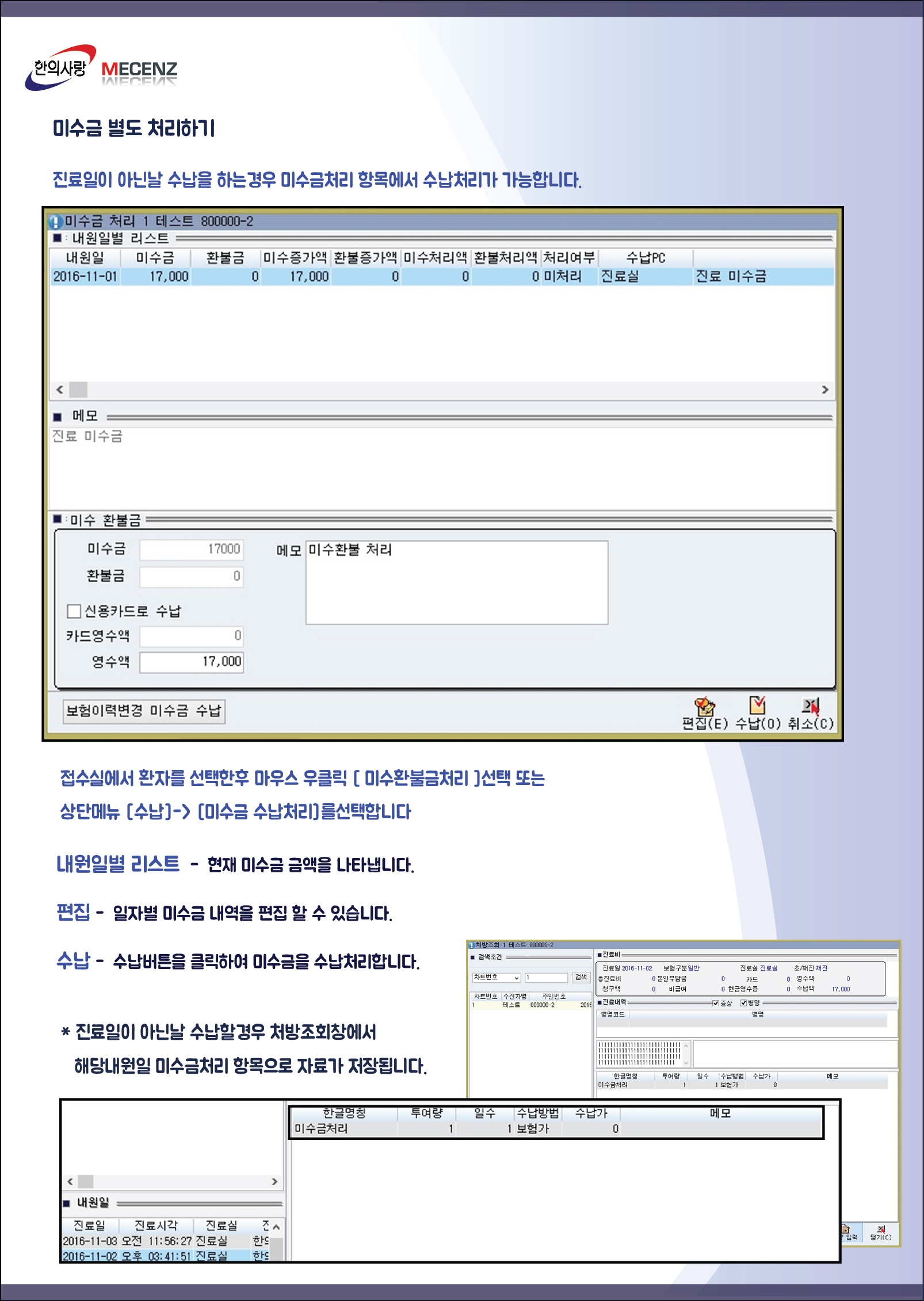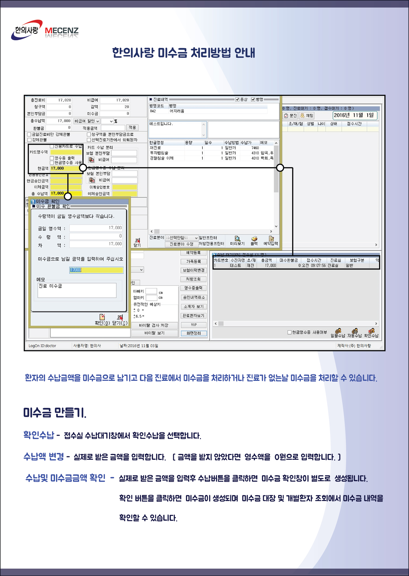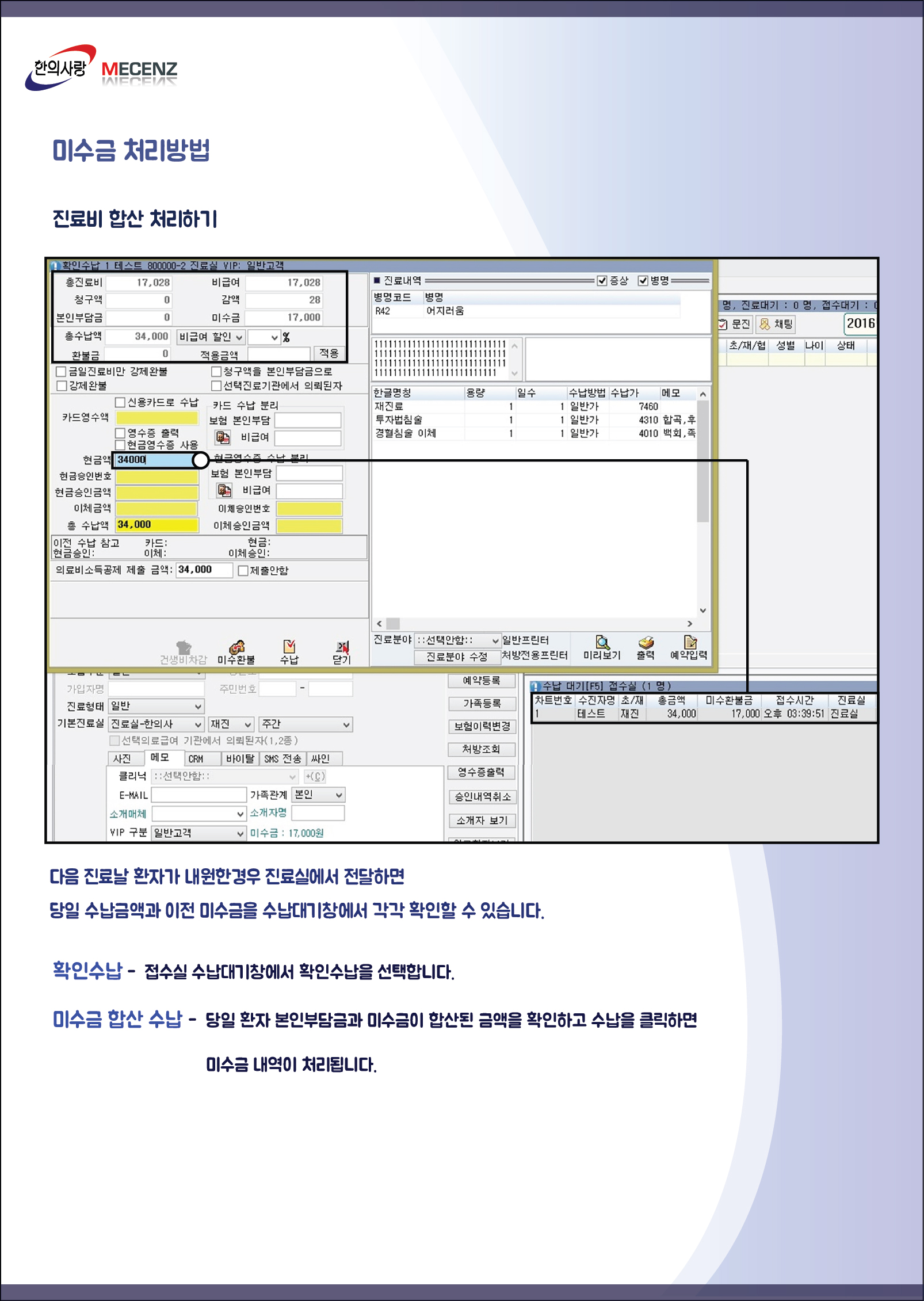 뉴한의사랑 접수실 미수금 처리방법 안내 [이미지]
