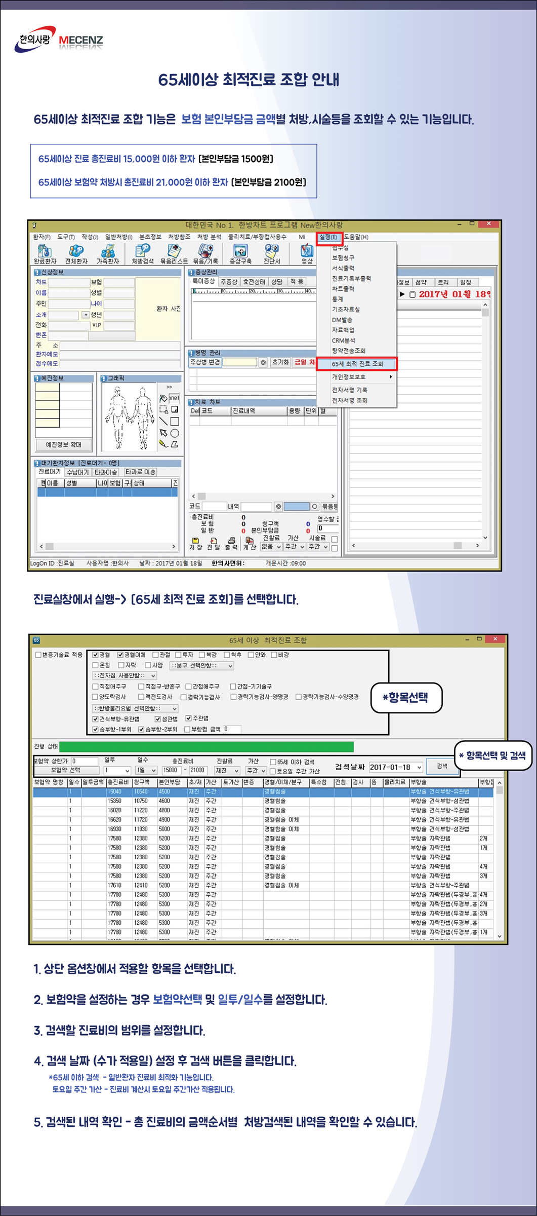 뉴한의사랑 진료실 65세 최적진료 조회 사용법 [이미지]