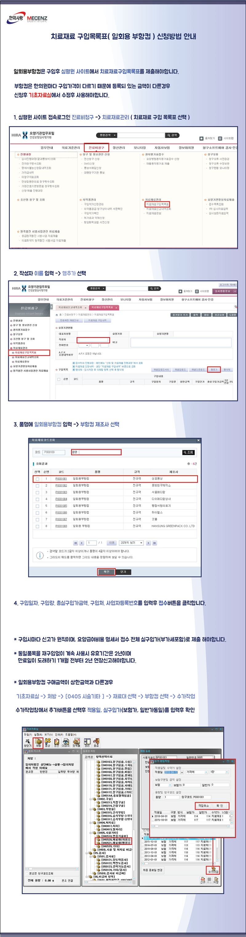 치료재료 구입목록표 [일회용 부항컵] 신청방법 안내