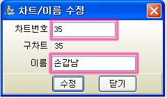 반드시 '차트번호' 라는 녹색글씨를 클릭해야 차트/이름 수정창이 뜬다는 것 잊지마세요.^^