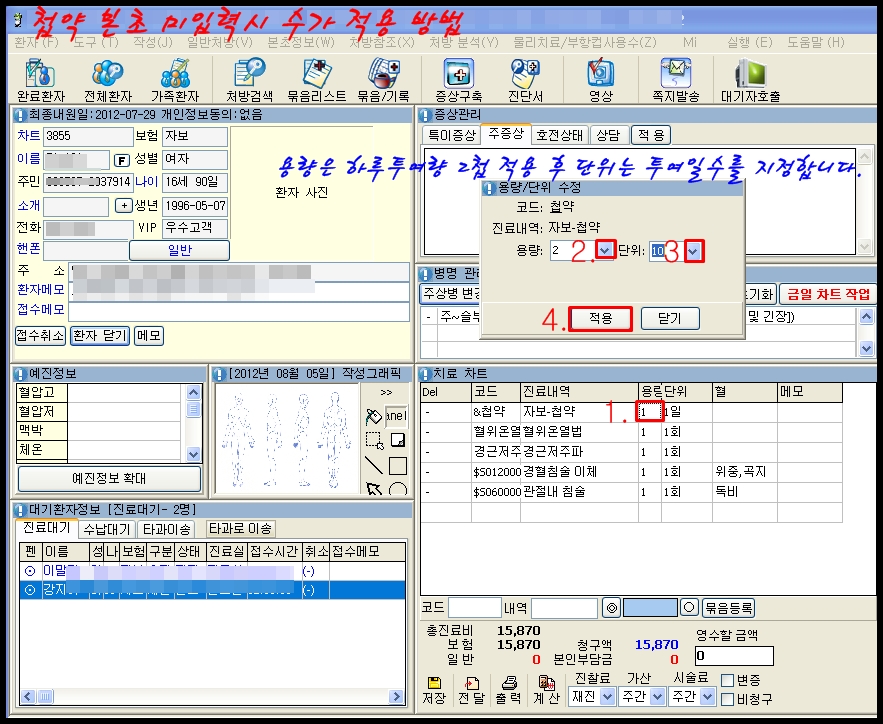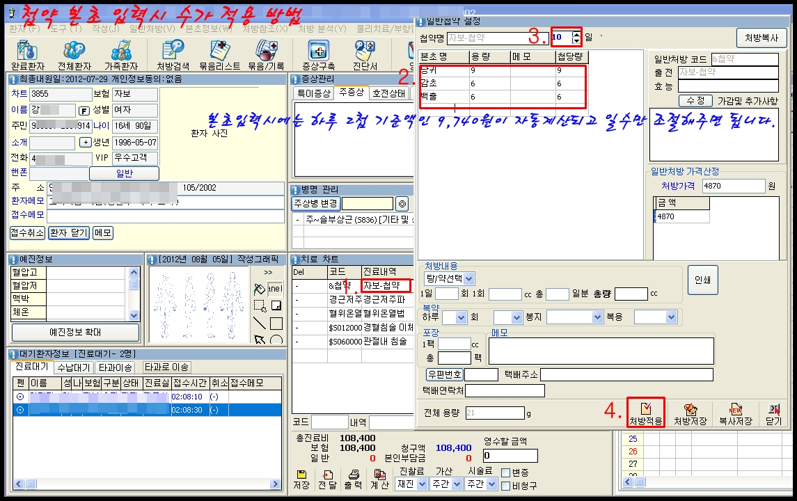 3. 차트에 본초 기입 후 자보첩약 수가 계산 하는 경우