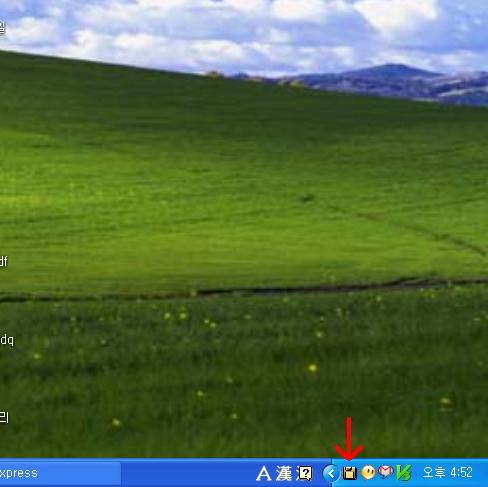 1. 한의사랑이 설치되어있는 PC  윈도우 바탕화면  오른쪽 하단 부분에  미니 아이콘을 더블클릭합니다.