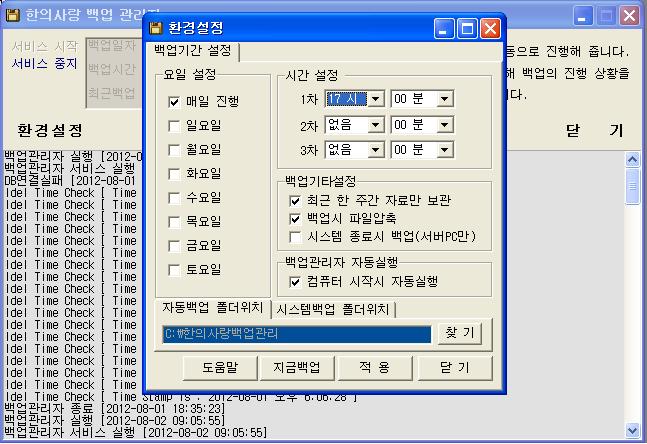* 요일별. 시간별  한의사랑 데이터 백업 기능