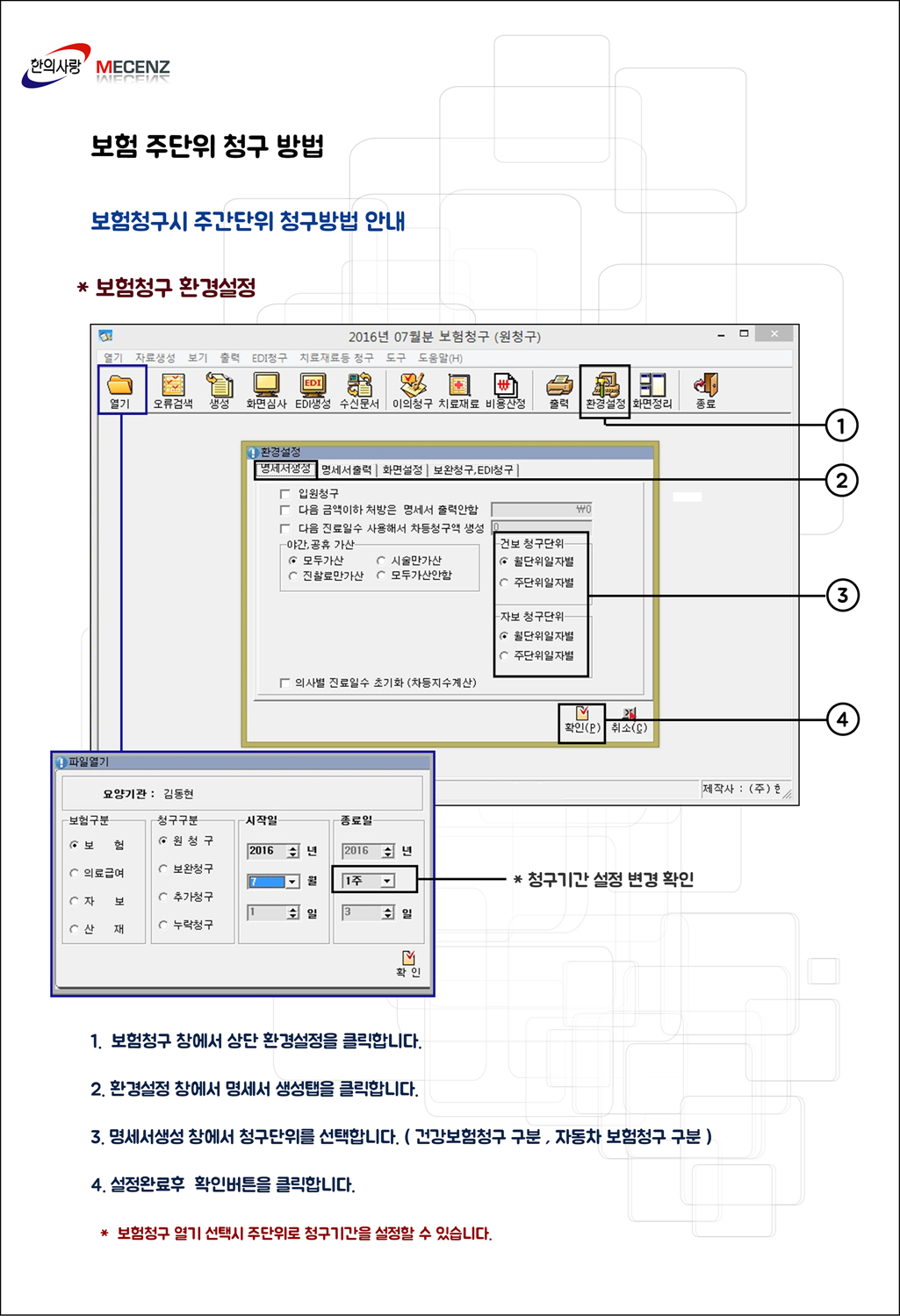 [TIP] 보험청구 주단위 청구 설정방법 안내