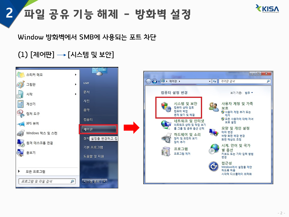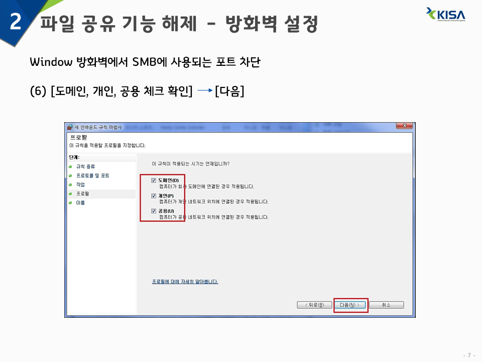 2. 파일 공유 기능 해제 - 방화벽 설정