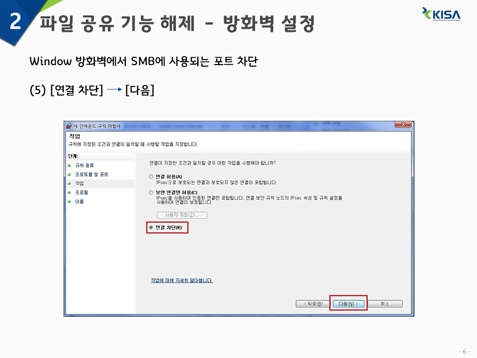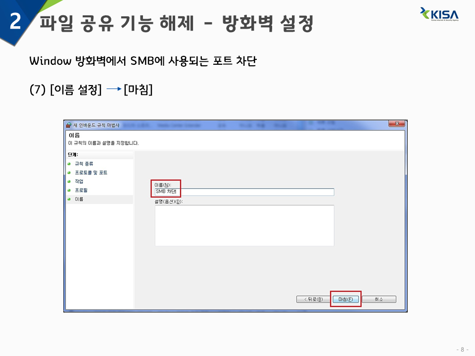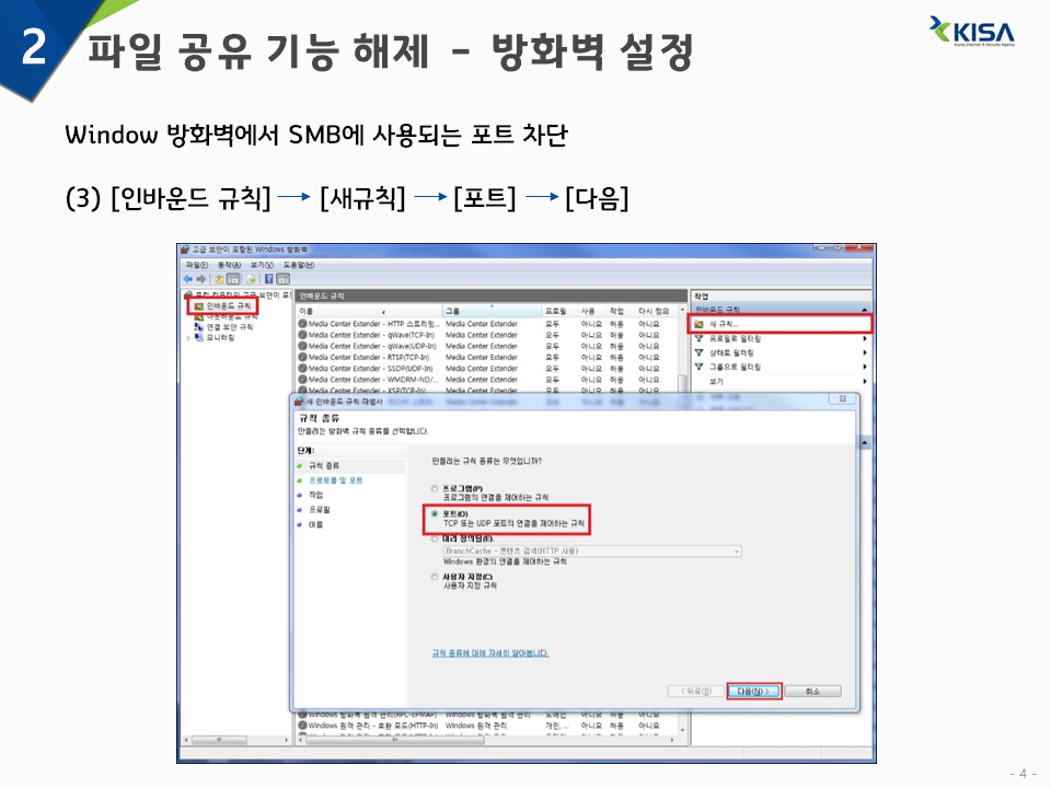 *붙임. 감염 경로 차단 방법(방화벽 설정 변경)