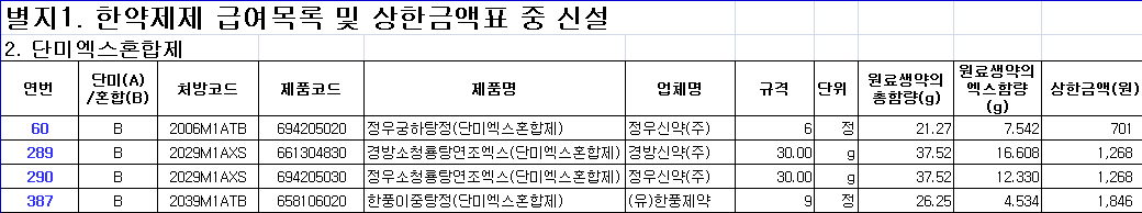첨부파일 첨부_2._한약제제_급여목록_및_상한금액표_개정_별지_1부.xlsx (197.8 KB)