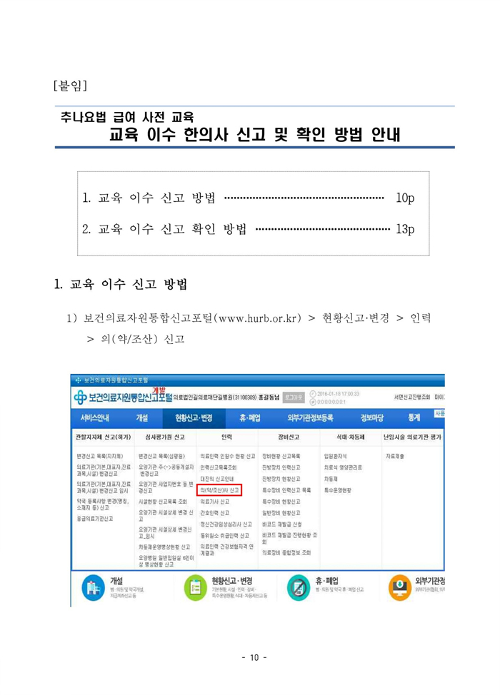 추나요법 급여 사전교육 교육이수 한의사 신고 및 확인 방법 안내