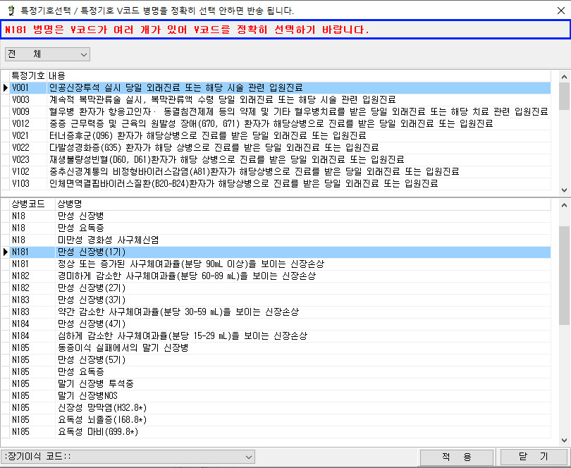 자동선택되는걸 사용하는 오류사항이 일부 발견되어 V코드와 병명을 선택후