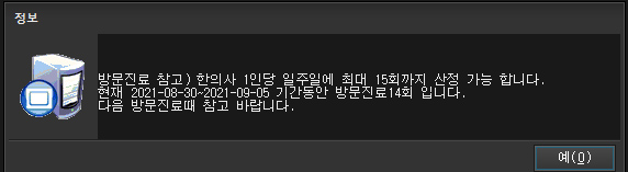 진료실에 15회 넘기기전에 메세지가 출력됩니다.