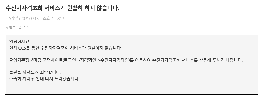 공단홈페이지에서 조회 가능하기때문에 공단사이트 안정화가 될때까지 수동 조회후