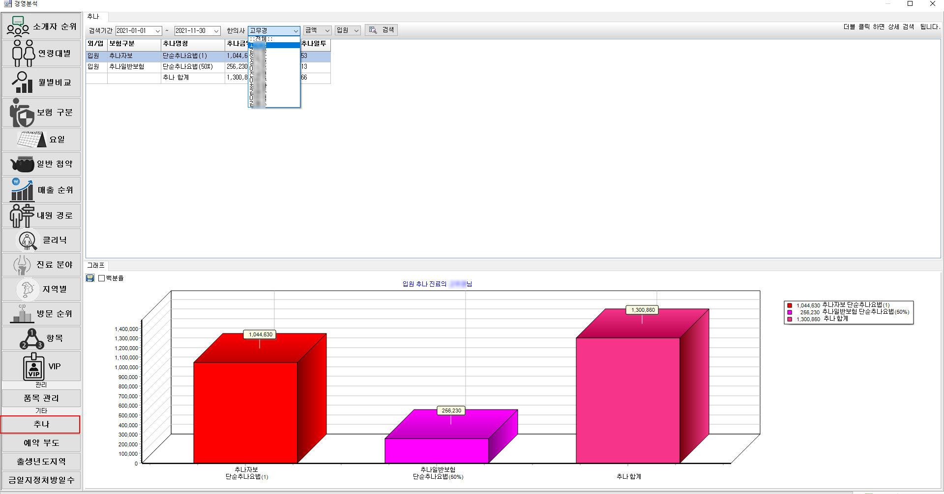 참고) 전체 조회는 추나 진료 한의사 통계가 나오고