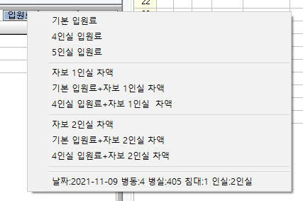 입원료 버튼 '기본입원+자보차액','4인실 입원+자보차액' 추가 되었습니다.