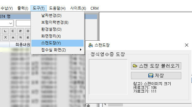 접수실 상단메뉴 도구-> 스캔도장 옵션에서