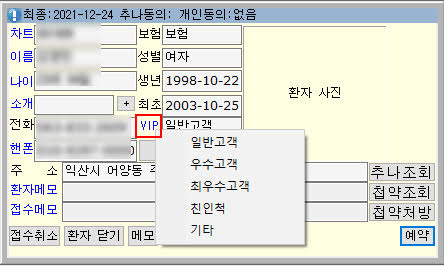공통검색에서 예를들어 VIP 구분 , 첩약환자