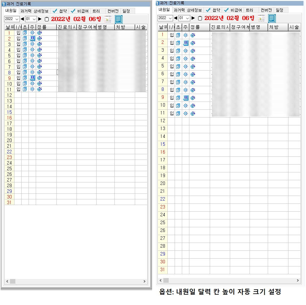 진료실 내원일 달력 칸높이 자동크기 설정 추가 업그레이드