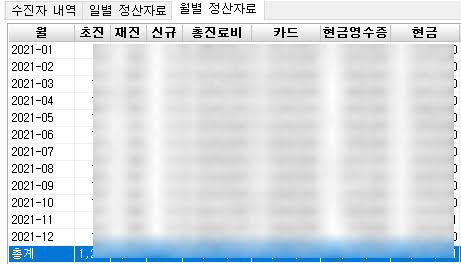 통계 외래 일별 정산, 월별 정산 총계 추가