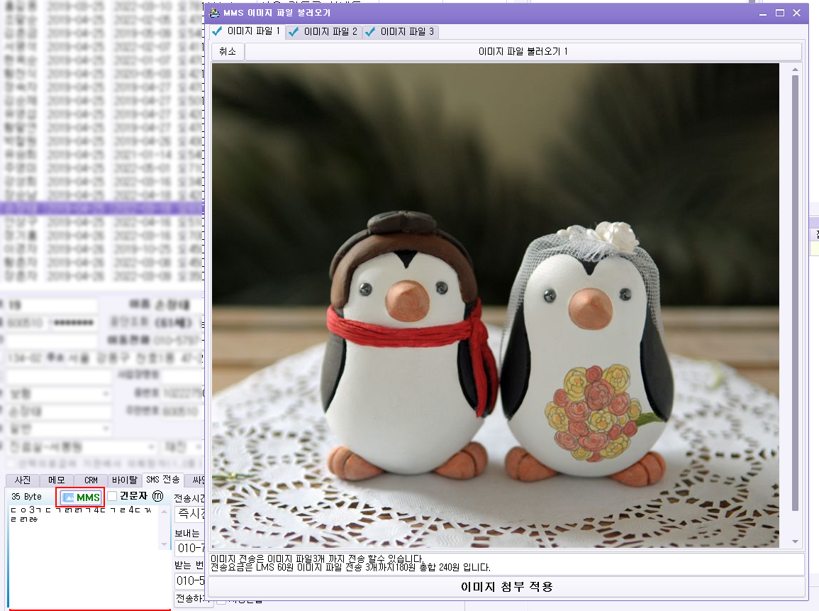 한의사랑 SMS 기능 MMS 이미지 첨부기능이 추가되었습니다.