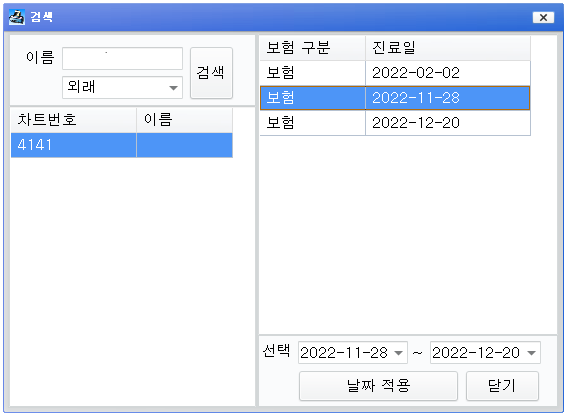 환자이름 검색할때 '초진일 날짜 적용'이 불편한 곳이 있어