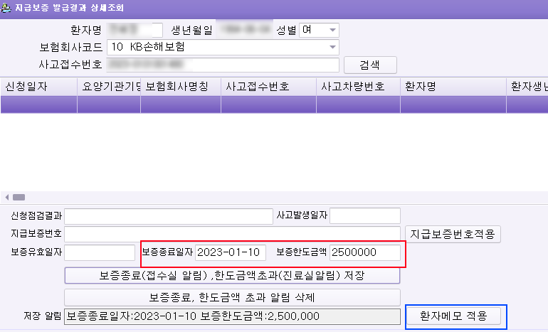 자동차보험 지급보증치료기간 변경 및 상세조회 업데이트