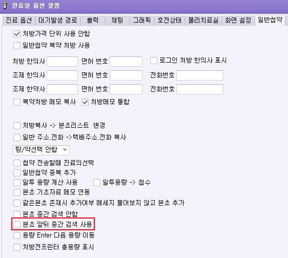 처방검색 중간검색 옵션 업데이트