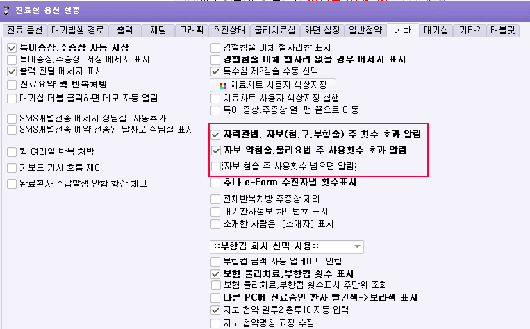 자락관법,약침술등 체크기능 업데이트