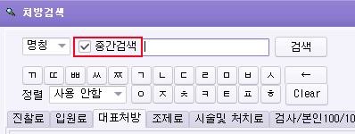 처방검색 중간검색 옵션 추가 되었습니다.