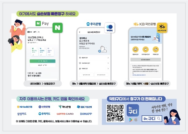 환자분이 카톡, 네이버페이, 은행 앱에서 서류없이 '영수증, 세부내역서' 청구 하는 방식 입니다.