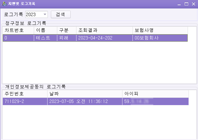 상단메뉴 접수->지앤넷 청구 로그 기록 조회