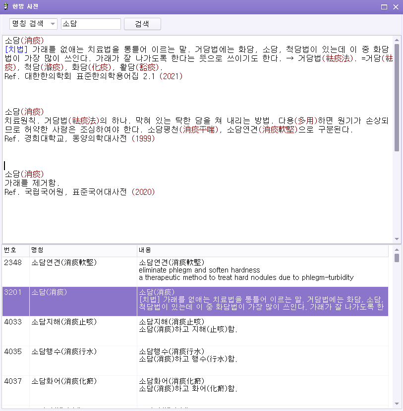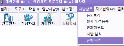 증상관리, 특이증상에서 한방사전을 찾고 싶다면 단어를 셀렉트 지정하고 CTRL+P 키 누르면