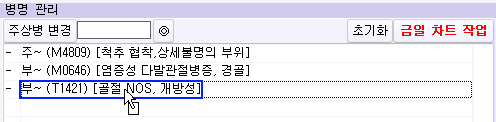 예) T1421 병명을 제1부상병 으로 변경 하려면  T1421  병명을 마우스 클릭한 상태에서