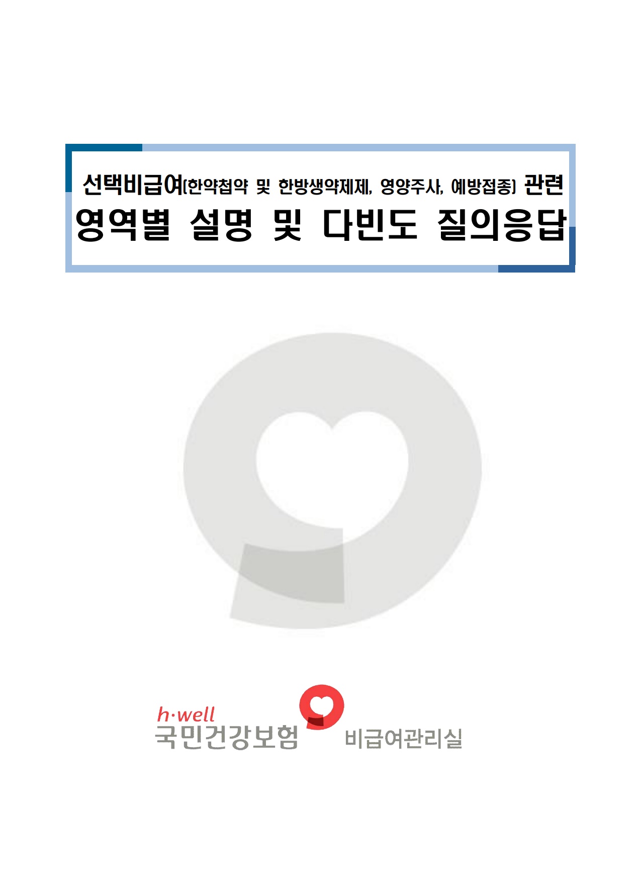 선택 비급여 다빈도 질의응답(한약첩약 및 한방생약제제, 영양주사, 예방접종)