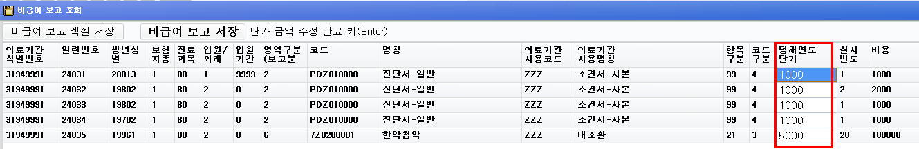 단가 입력해도 기존 처방한 자료는 수정되지 않기 때문에 기초자료실 권장 합니다.