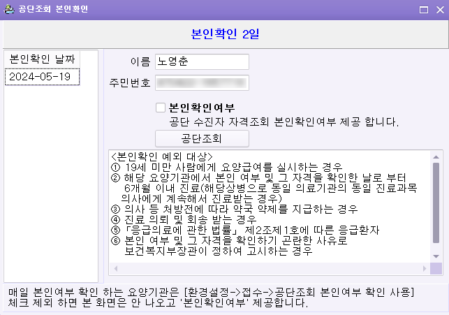 수진자조회도 5월 20일 부터 확인 요양기관 본인확인 여부 추가 되어