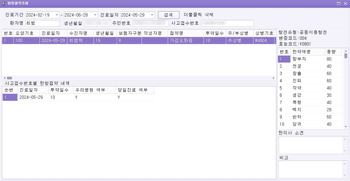 사고접수번호별 한방첩약 추가 옵션 업그레이드