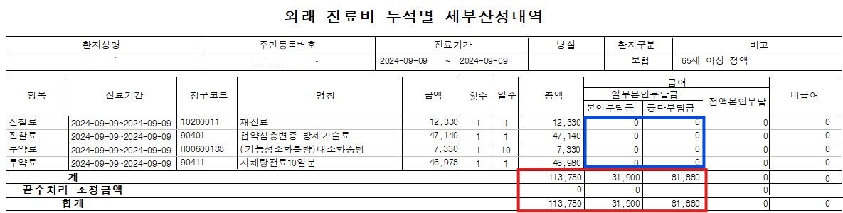 추석 지원금 수가 진료내역 없는경우 출력되지않습니다.