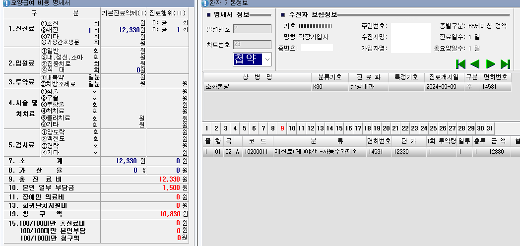 65세 시범첩약 정액 환자 영수중 수정 업데이트