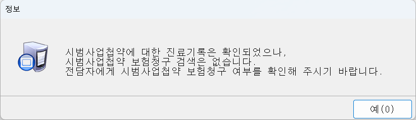 보험 실행 시 시범첩약 청구 검색 기록이 없으면