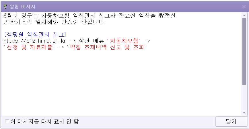 약침술은 심평원 신고가 필수이며, 8월 진료 건부터는 신고하지 않을 경우 반송 됩니다.