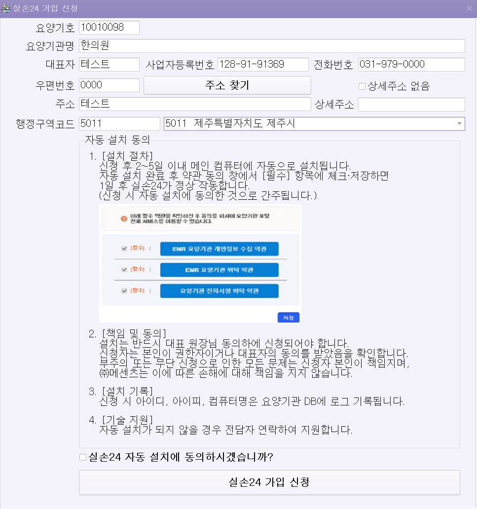 정보를 입력후 신청하면 이후 메인PC 동의 서명이후 자동 설치됩니다.
