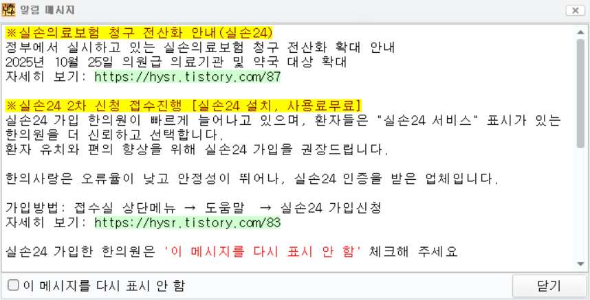 실손24 신청 팝업 공지