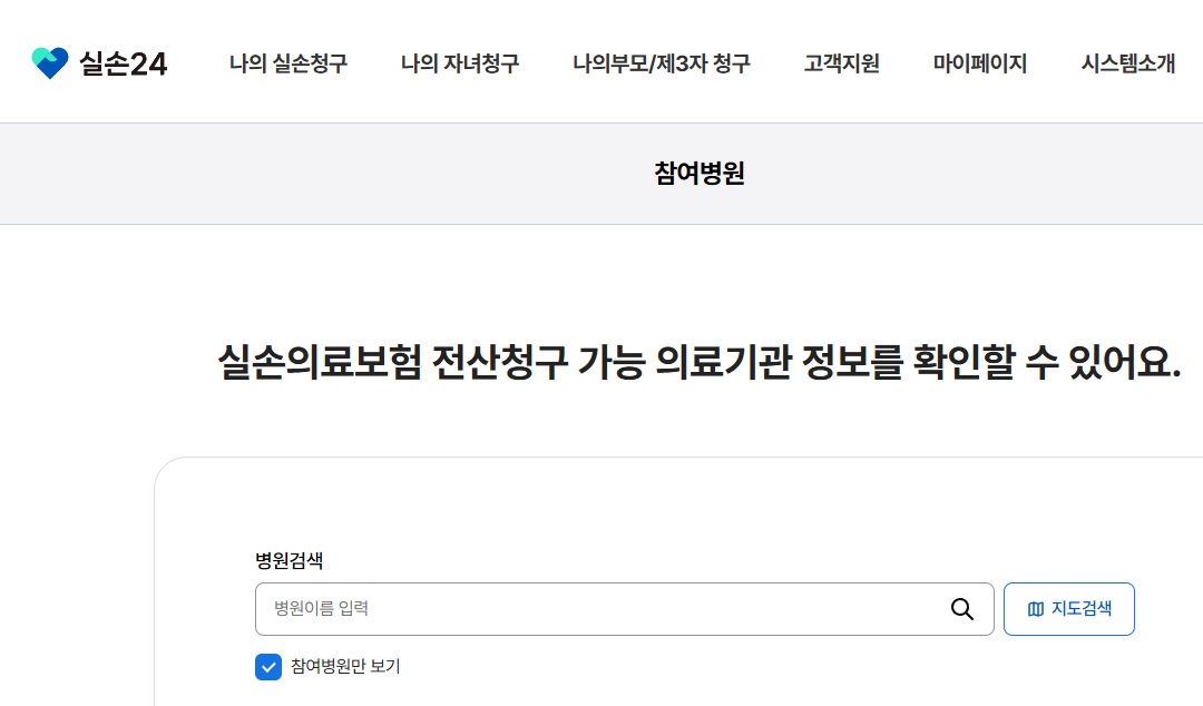 실손24 사이트 -> 참여병원 [한의원 이름 검색]
