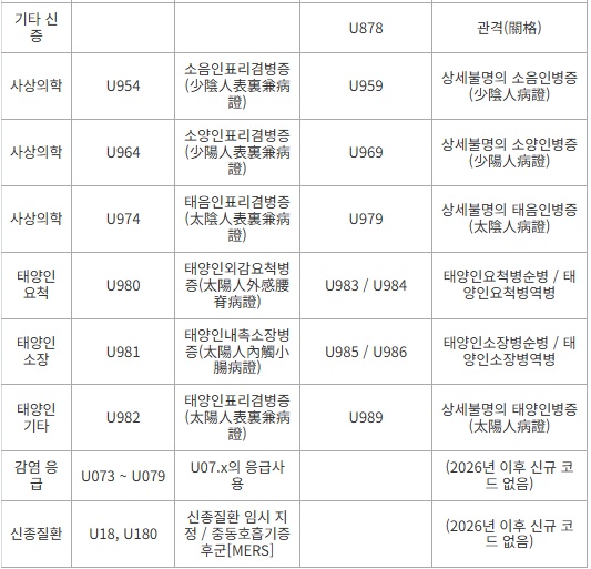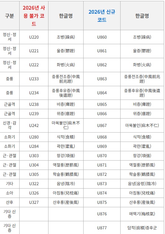 2026년 U코드 사용 불가 코드 , 신규 코드 비교