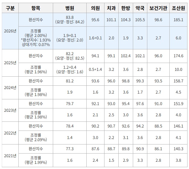 연도별 환산지수 결정 현황